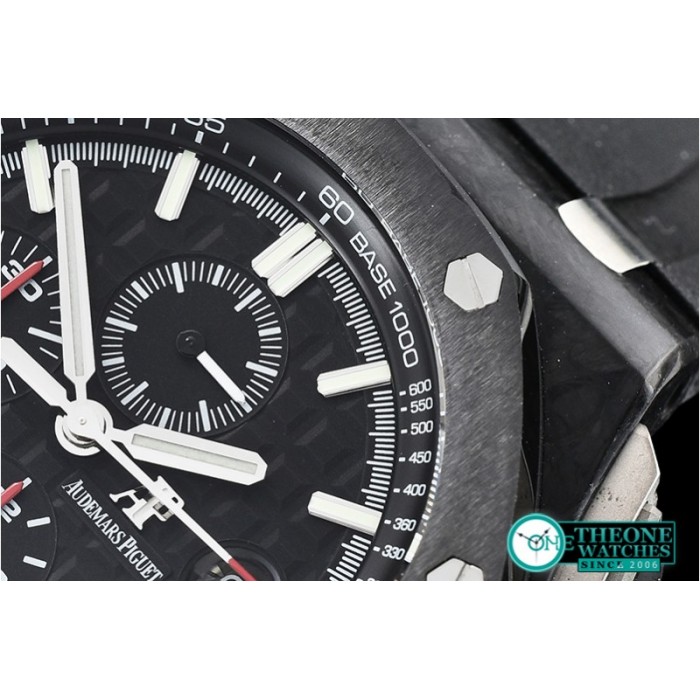 JF Factory AP Royal Oak Offshore 44mm Novelty Forged Carbon **Updated Cyclops, Datewheel & Dial MOVEMENT: Asia 7750 Automatic with Secs @12, 28800bph..