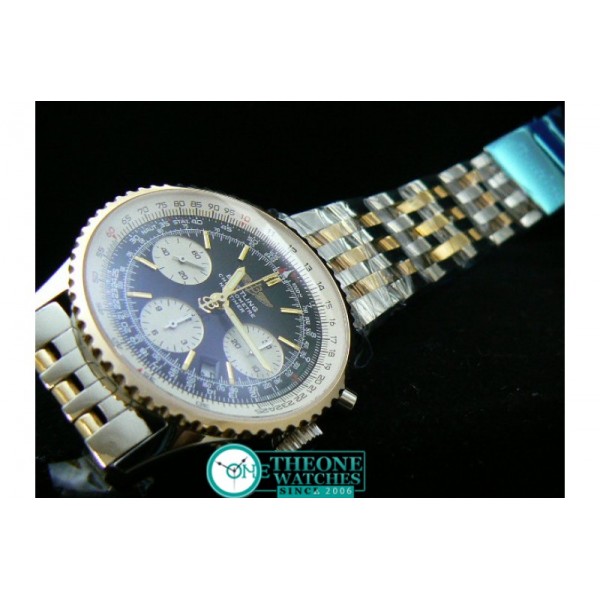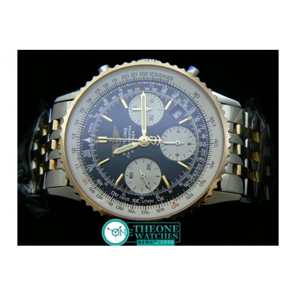 Model : 18K TT Case, Black Dial, Off White Subdials, Stick Markers on 18K Plated TT Bracelet Bi-directional Bezel