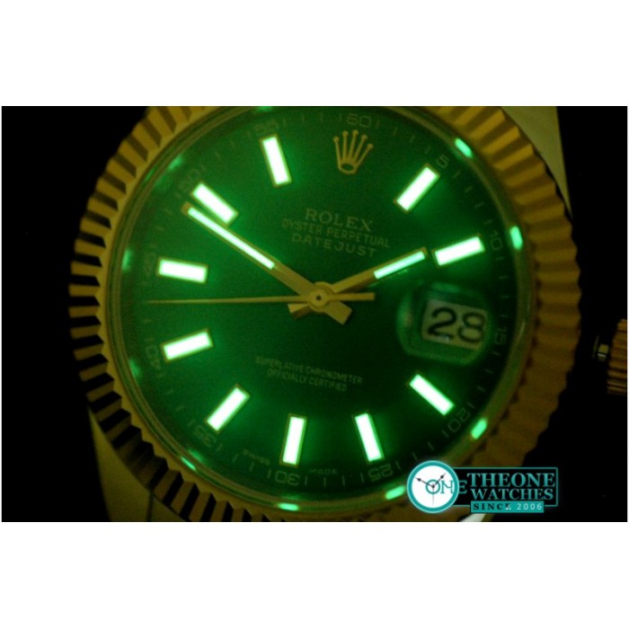 DIAL COLOR: Anniversary Green Dial, Superlume Stick Markers