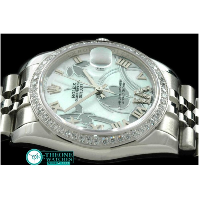 DIAL COLOR: Flora Graffiti Pearl White Dial, Oversize 6 Roman Numeral Markers